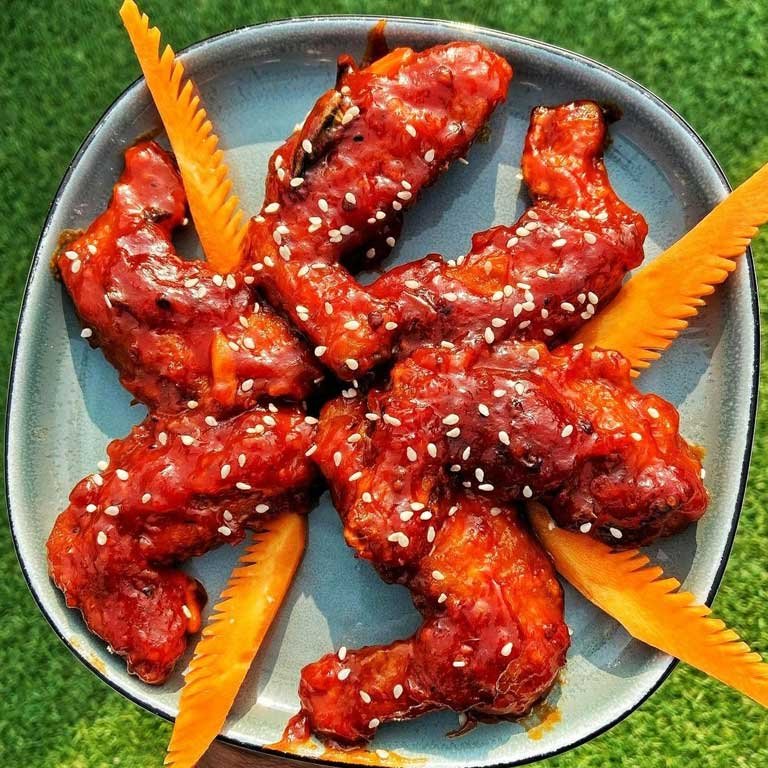 6 Naga (Extreme Hot): Six pieces of fiery chicken coated in intense naga chili spices for an extreme heat and bold flavor experience.