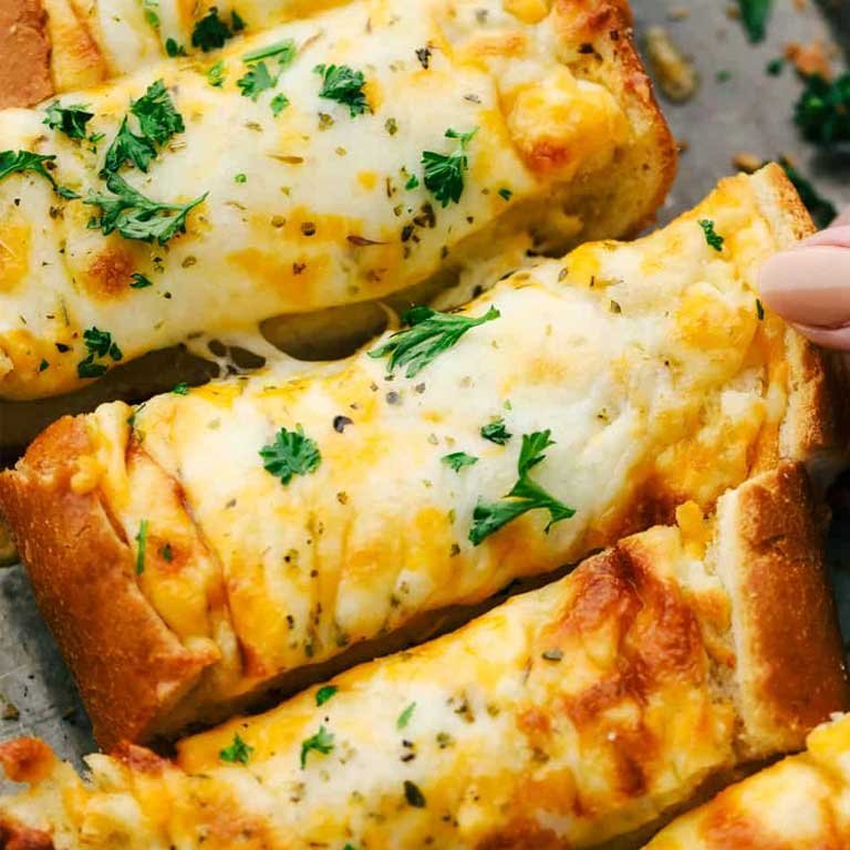 Crispy garlic bread layered with rich, melted cheese for a savory, buttery, and irresistibly cheesy bite.